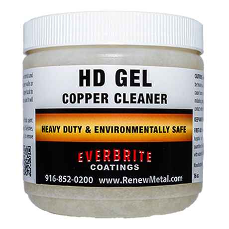 Everbrite™ HD Gel Copper Cleaner. Environmentally Friendly, Heavy Duty Copper Cleaner. Use on Copper Roofs, Copper Gutters, Copper Hoods, Fireplaces & other copper that is difficult to clean. Check out the pictures of it working.